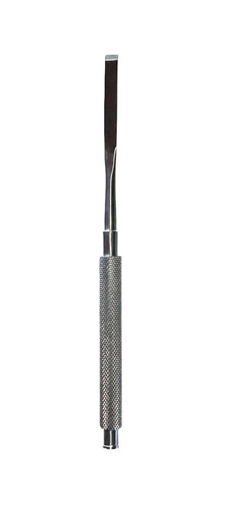 Долото хирургическое 150х5 мм прямое плоское, с односторонней заточкой. Применяется в челюстно-лицевой хирургии и остеотомии для удаления выступающих краёв кости. Рабочая часть плоская с односторонней заточкой шириной 5,0 мм. Ручка круглая, рифлённая.