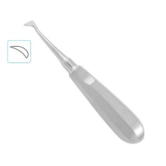Элеватор зубной угловой, левый флажок под 90 градусов используется для удаления зубов и их корней. Рабочая часть изогнутая.