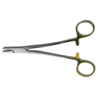 Иглодержатели производят из медицинской нержавеющей стали. Бывают иглодержатели легированные и с твердосплавными вставками. Имеют насечки на браншах и фиксатор - кремальеру.