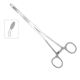 Корнцанг изогнутый 230 мм для детей (аналог Щ-20-4) — это хирургический зажимной инструмент с кольцевидными рукоятками и с массивными овальными (оливообразными) рабочими частями. На рабочих губках имеется насечка для надежного захвата и удержания тампонов, дренажей и прочих материалов. Длинная рабочая часть для удобства использования.