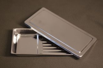 Лоток стоматологический ЛМС на 8 инструментов с крышкой из нержавеющей стали.