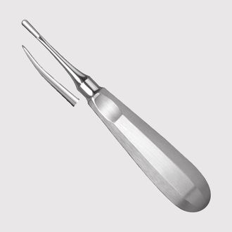 Люксатор стоматологический изогнутый 3,0 мм используется для рассечения периодонтальной связки зуба и удаления зуба путём щадящей люксации. Режущая кромка люсатора достаточно острая, легко помещается в периодонтальную полость, не травмируя кость. Рабочая часть гладкая, без желоба.