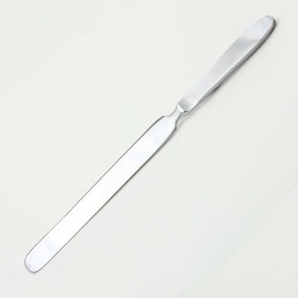 Нож мозговой НЛ 300*175: относится к анатомическим инструментам, которые используются при вскрытии трупов для разрезов головного мозга. Изготавливается мозговой нож из легированной стали, обе рабочие поверхности инструмента острые, а лезвие имеет на конце закругление. Для уменьшения веса изделия рукоятка в некоторых моделях может быть полой.