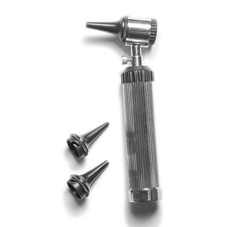 Данный отоскоп цельнометаллический, лампочный, со сменными многоразовыми воронками.