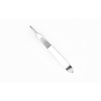 Ручка для скальпеля № 3 малая (120 мм) многоразовая предназначена для крепления одноразовых лезвий с размерами с 10 по 15. Держатель для лезвий изготовлен из нержавеющей стали, что позволяет проводить многократную чистку и стерилизацию изделия. Для удобства на рукоятке проштампован номер держателя лезвий и нанесена противоскользящая насечка