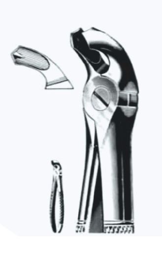 Форма рабочих частей соответствует анатомическим особенностям удаляемых зубов — несходящиеся губки с шипом, изогнутые вертикально. Эргономичные рукоятки для более прочного удержания и захвата. Изготовлены из высококачественной нержавещей стали. Длина 160 мм